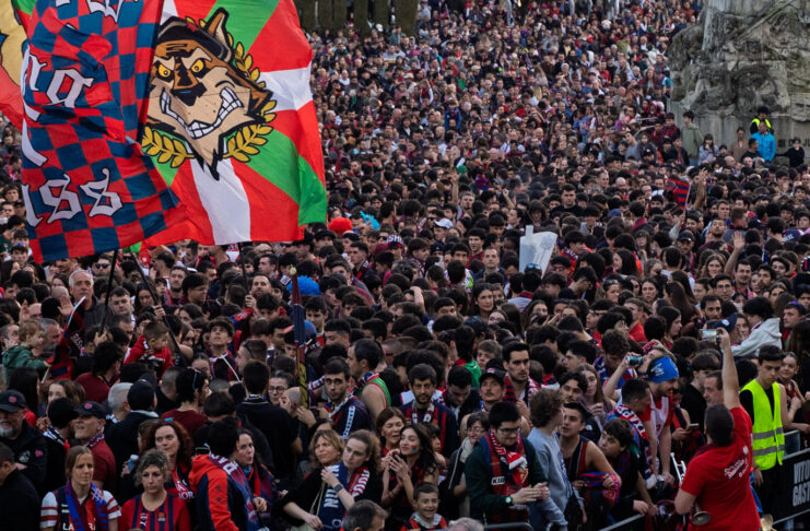 El acto se prolongó durante cerca de hora y media y concluyó con el lanzamiento de tres cohetes. Posteriormente, la afición se desplazó hacia el Casco Viejo, donde la celebración continuó en bares y calles del centro.