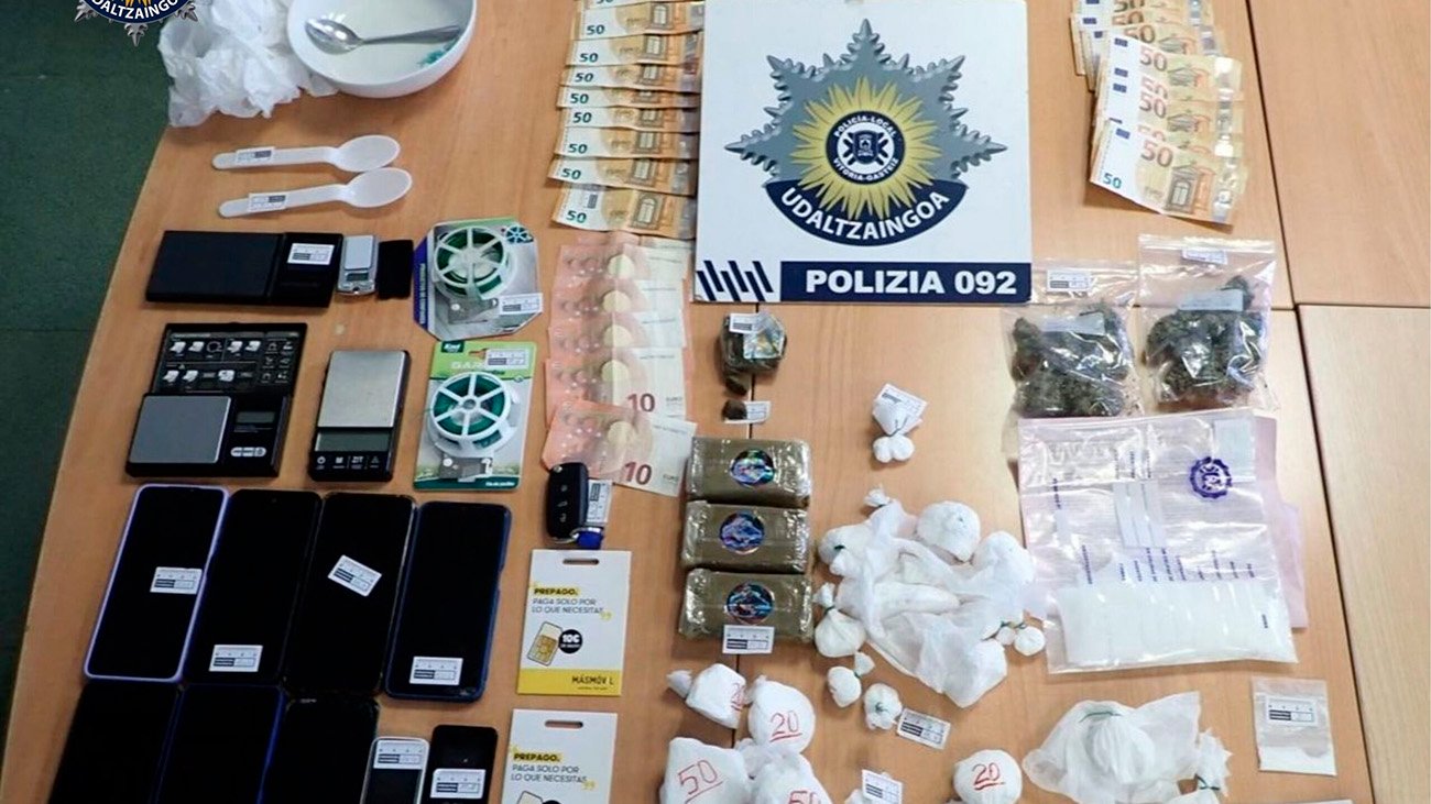 La Policía Local de Vitoria-Gasteiz ha detenido a un hombre de 60 años acusado de un delito contra la salud pública tras una investigación que se ha prolongado durante siete meses. En la operación se han intervenido más de 500 gramos de cocaína y más de 300 gramos de hachís, con un valor estimado en el mercado ilícito superior a los 33.000 euros. El juzgado ha decretado su ingreso provisional en prisión.
