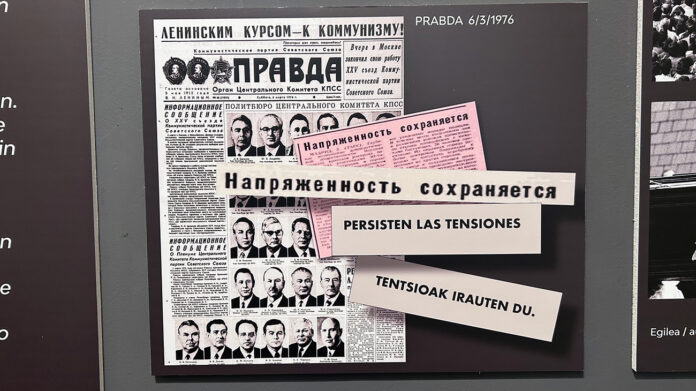 La muestra organiza las portadas en cuatro bloques: prensa editada en Euskal Herria, prensa del Estado, publicaciones al margen del poder y prensa internacional. La comparación permite observar diferencias de enfoque y también los límites informativos impuestos en el ámbito estatal.