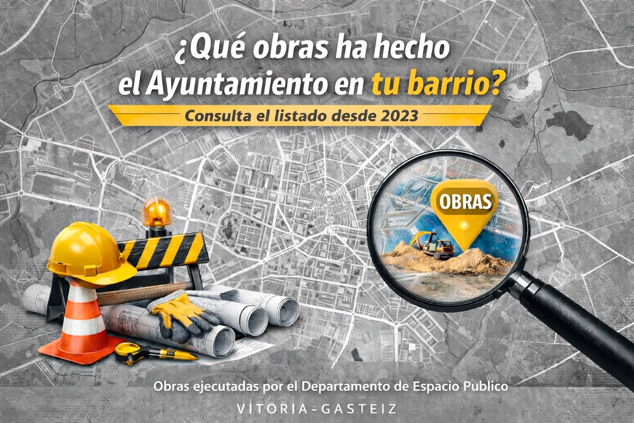 El Ayuntamiento de Vitoria-Gasteiz ha ejecutado más de 100 obras en espacio público desde junio de 2023 en barrios, concejos y zonas estratégicas de la ciudad. La información, facilitada por la concejala de Espacio Público y Barrios, Beatriz Artolazabal (PNV), incluye intervenciones en calles, plazas, parques, colegios, entornos peatonales y carriles bici, con un presupuesto movilizado de más de 67 millones de euros.