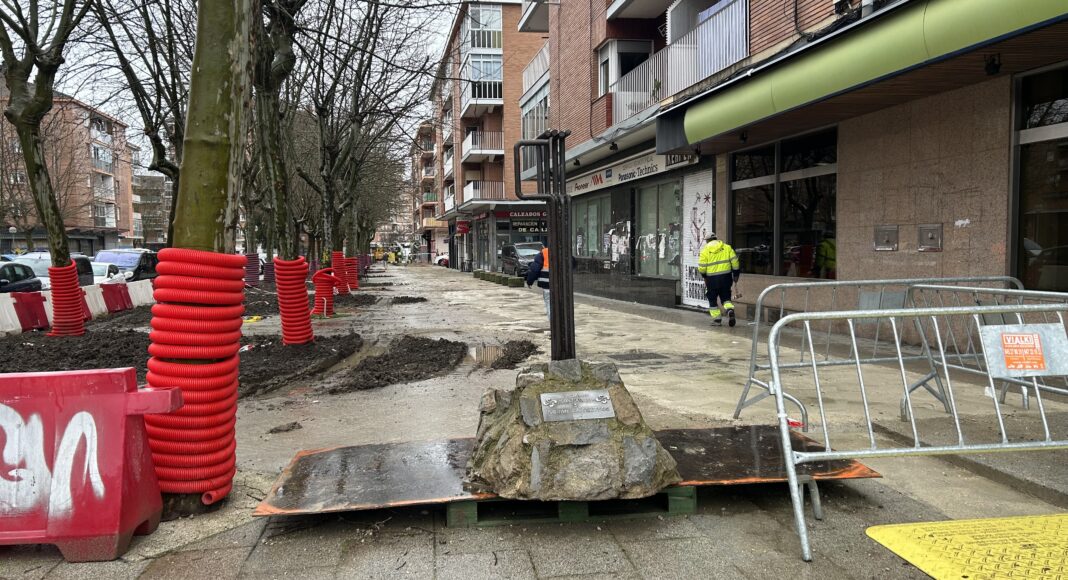 La intervención forma parte del plan de mejora urbana del barrio, que avanza por distintas fases. Actualmente, los trabajos afectan directamente a la plaza donde se encuentra el monolito, con maquinaria, vallas y zonas delimitadas por seguridad.