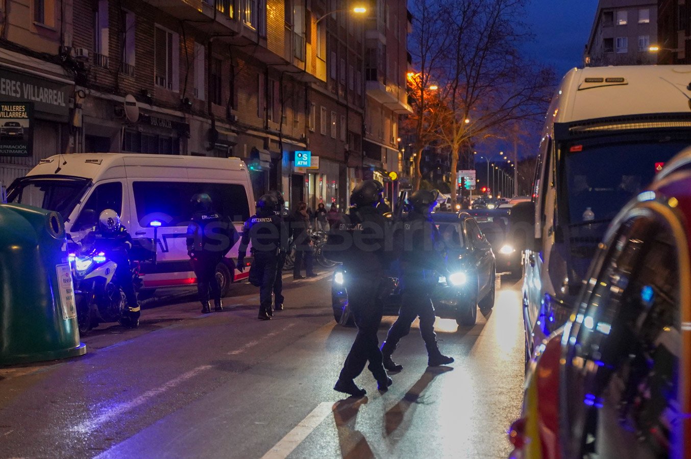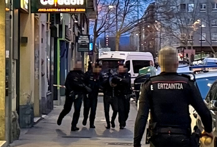 La Ertzaintza ha desplegado recursos de Protección Ciudadana y de la sección Bizkor de la Brigada Móvil, junto con un negociador especializado en este tipo de situaciones. Ante la negativa del hombre a cesar su actitud amenazante y abandonar la vivienda, y debido al riesgo existente para las personas que permanecían dentro, los efectivos Bizkor han accedido finalmente al interior y han reducido al individuo.