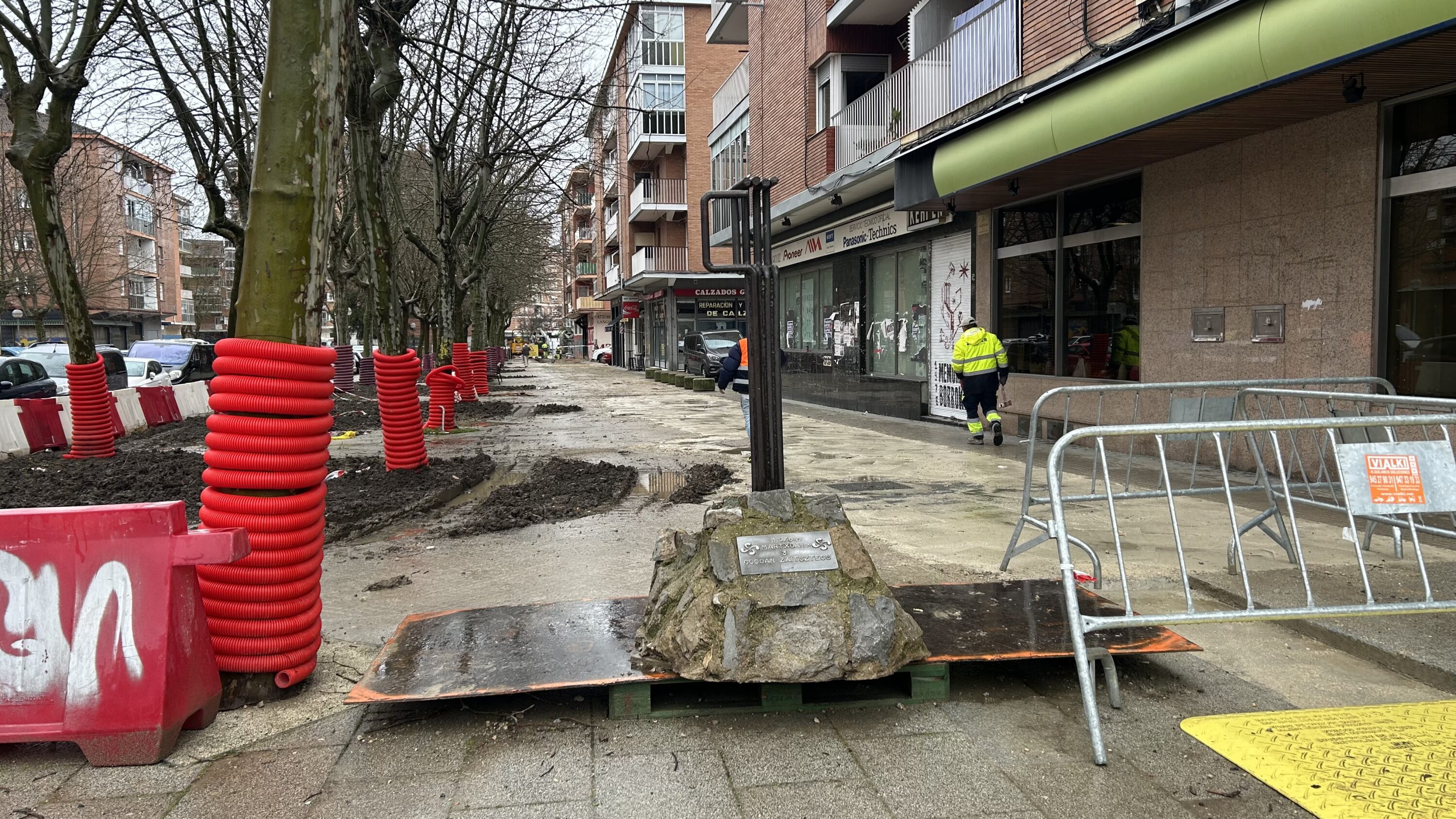 El monumento ha sido desplazado unos metros dentro del nuevo diseño ajardinado. Las actuaciones forman parte del proyecto global de adecuación del entorno.