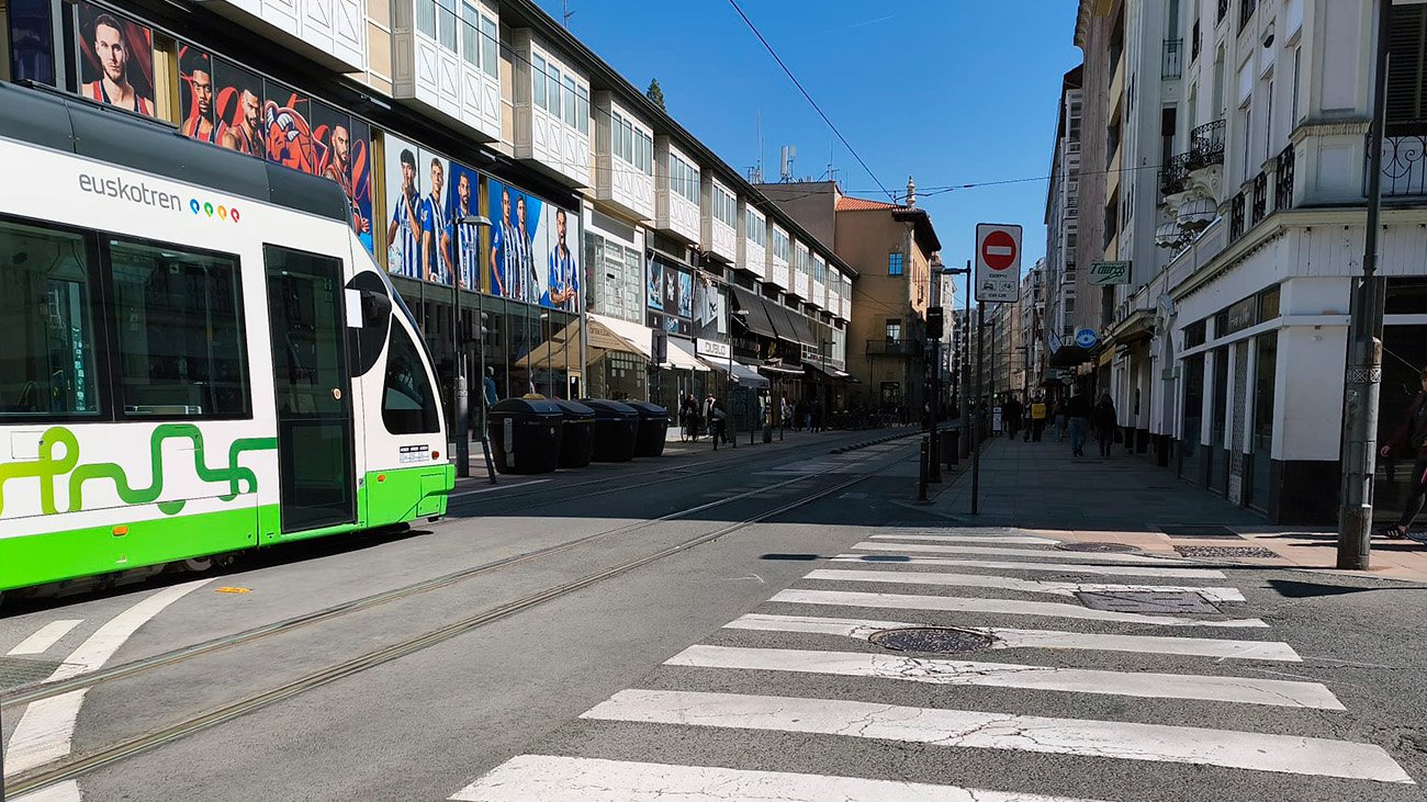 Un atropello de un autobús de TUVISA a una mujer corta el tranvía en pleno centro de Vitoria
