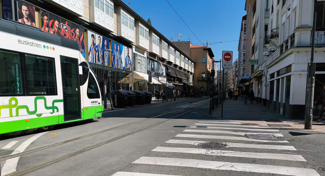 Un atropello de un autobús de TUVISA a una mujer corta el tranvía en pleno centro de Vitoria