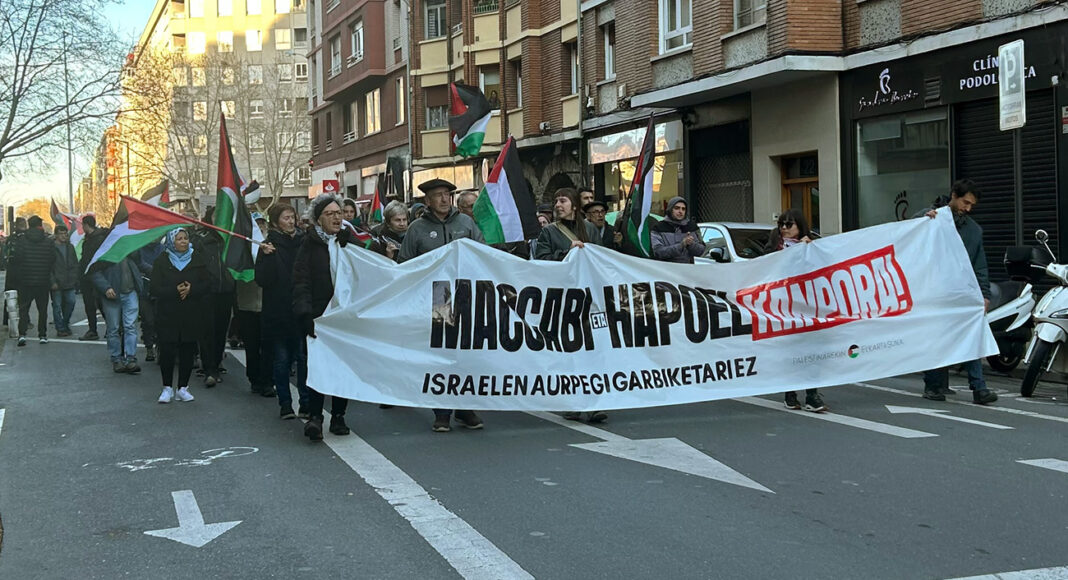 Según ha explicado, la reivindicación de Palestinarekin Elkartasuna no se limita al partido de este viernes. “Nosotros lo que pedimos es que el Maccabi no juegue ni aquí ni en ningún lado”, ha afirmado. En la misma línea, ha añadido que ese rechazo también se extiende al Hapoel y a “cualquier representación sionista de lavado de cara”.