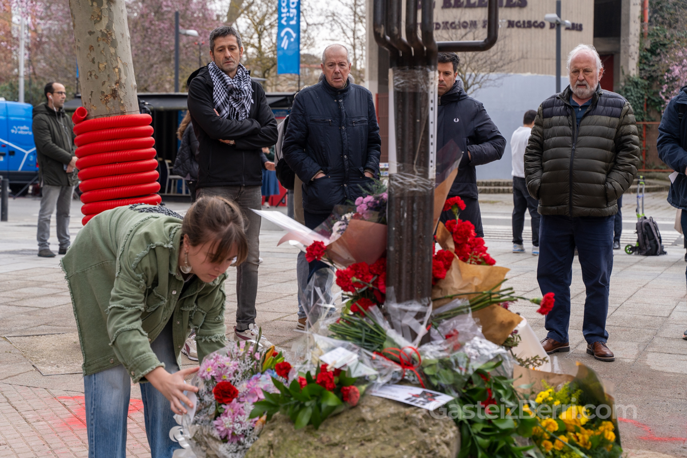 Vitoria-Gasteiz está viviendo una jornada intensa de homenajes y movilizaciones con motivo del 50 aniversario de la masacre del 3 de marzo de 1976, en la que cinco obreros fueron asesinados en Zaramaga. Desde primera hora, instituciones, partidos, sindicatos y ciudadanía han desfilado ante el monolito de Fermín Lasuen para depositar sus ofrendas florales.