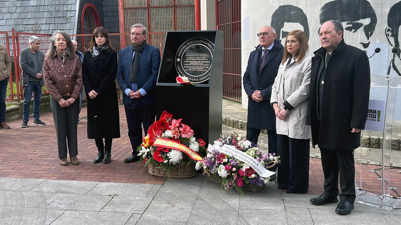 La iglesia de San Francisco de Asís recibe la placa que la declara Lugar de Memoria Democrática en el 50 aniversario del 3 de marzo. El distintivo se instalará cuando concluyan las obras en el templo.