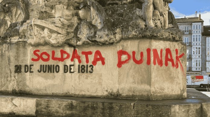 Entre los puntos afectados se encuentra el Monumento a la Batalla de Vitoria, donde apareció una pintada en color rojo con el texto “soldata duinak”, realizada durante la mañana.