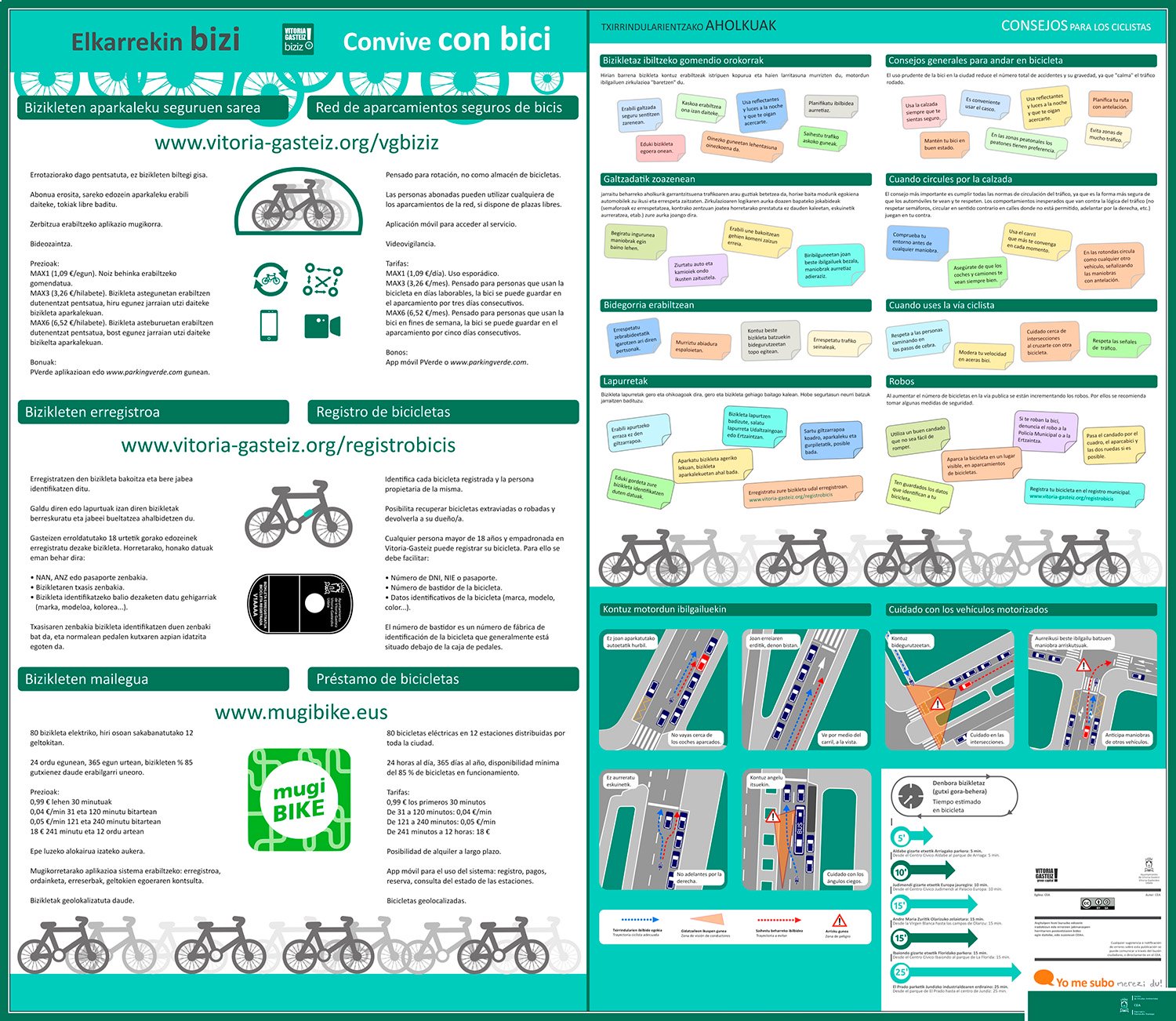 En la parte trasera del desplegable se incluye también información práctica sobre el funcionamiento de VGbiziz, el registro municipal de bicicletas y el propio sistema Mugibike.