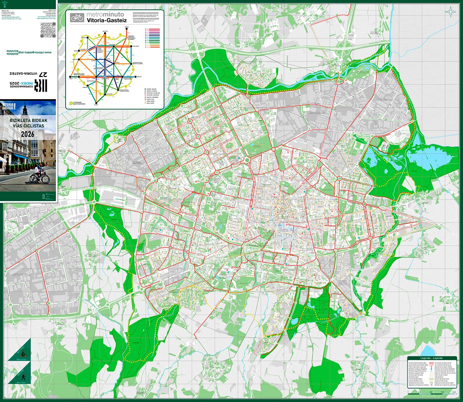 Vitoria-Gasteiz ha reeditado su mapa de rutas ciclistas con una novedad pensada para el día a día sobre dos ruedas. La publicación incorpora un metrominuto ciclista, una herramienta visual que permite saber cuánto se tarda en bicicleta entre los principales puntos de la ciudad y que busca facilitar recorridos más rápidos y sencillos.